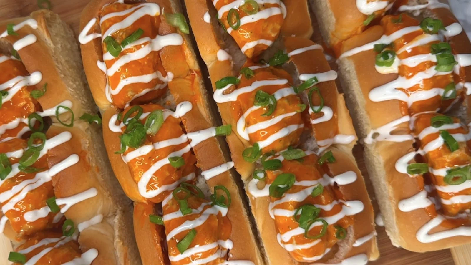 Assemble subs in toasted rolls with buffalo chicken meatballs, Hidden Valley™ Ranch Dressing (drizzled on top), and green onions.