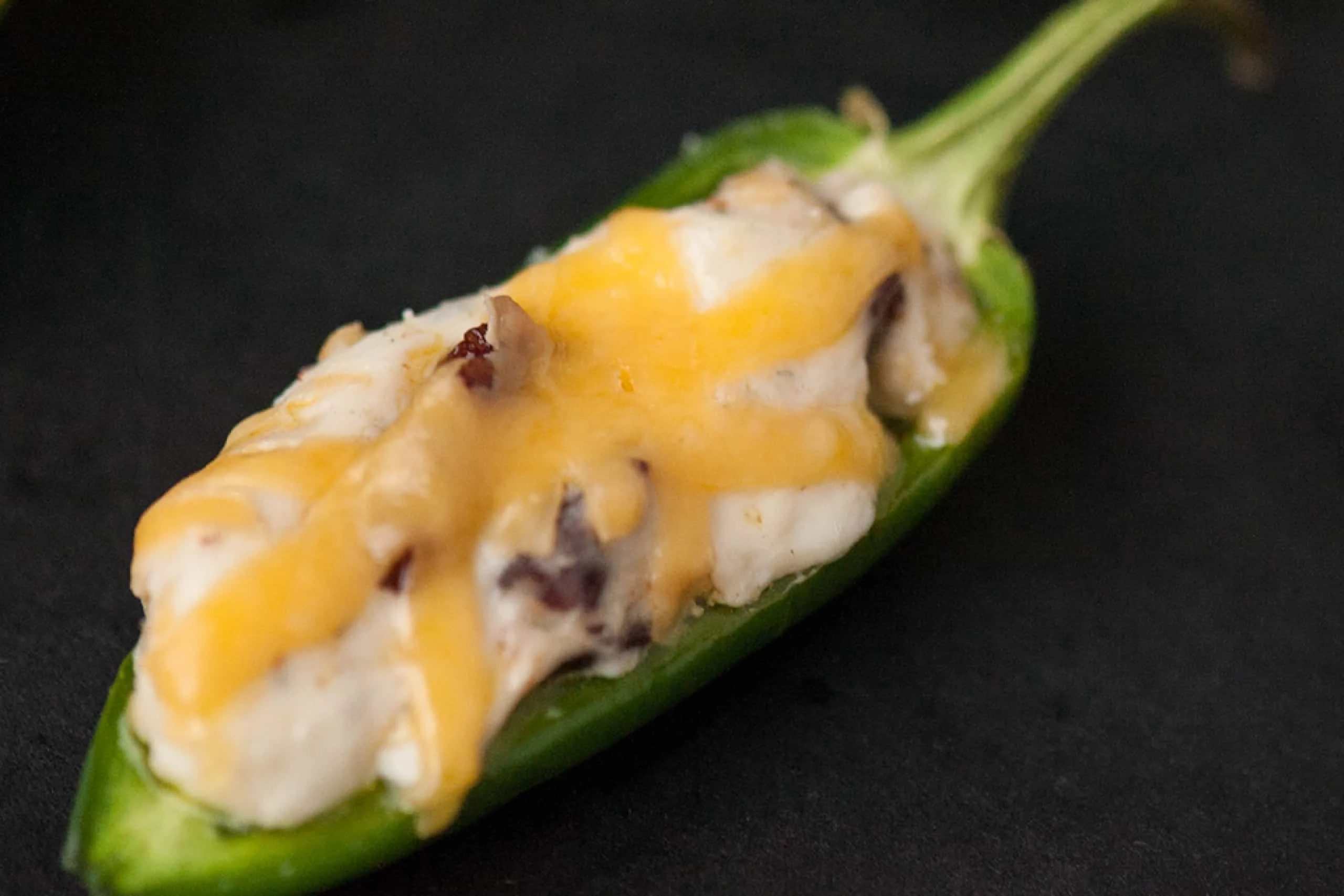 Fill each cavity of the halved jalapeños with the mixture and then top with additional shredded cheese.