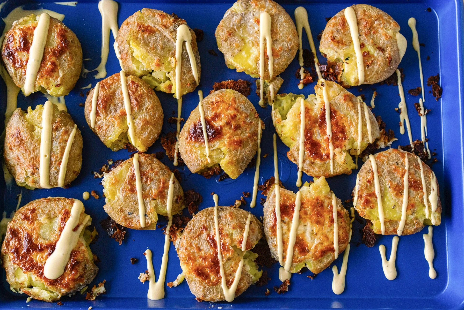Garlic Ranch Smashed Parmesan Potatoes