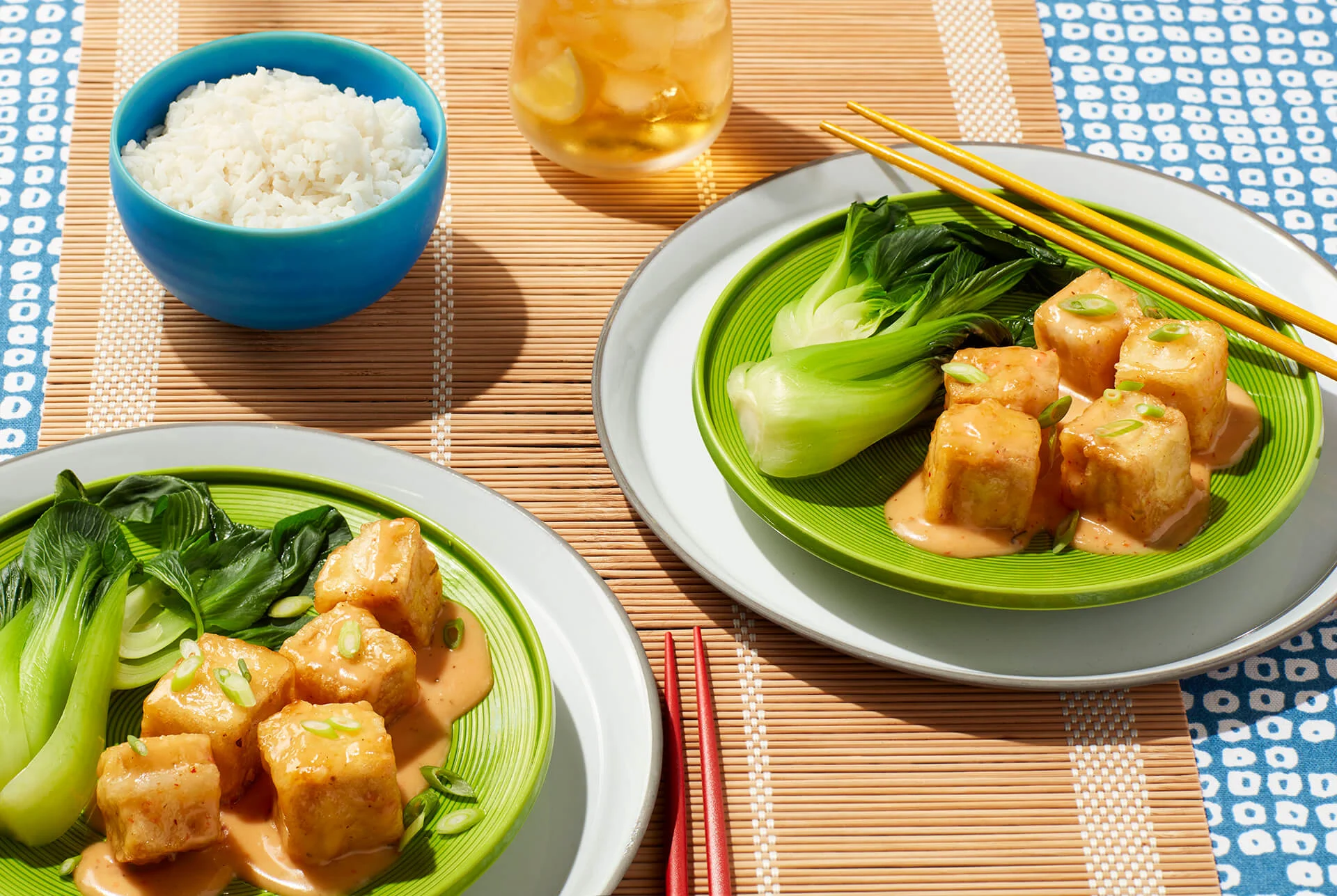 Remove the pan from the heat and let it rest for about 2-3 minutes, to slightly cool down. Add the sauce to the pan and gently toss until the tofu pieces are evenly coated. Garnish with sliced scallions and serve immediately.